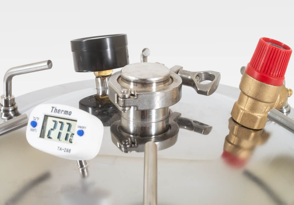 1,5 дюймовый кламп позволяет превратить автоклав в самогонный аппарат.