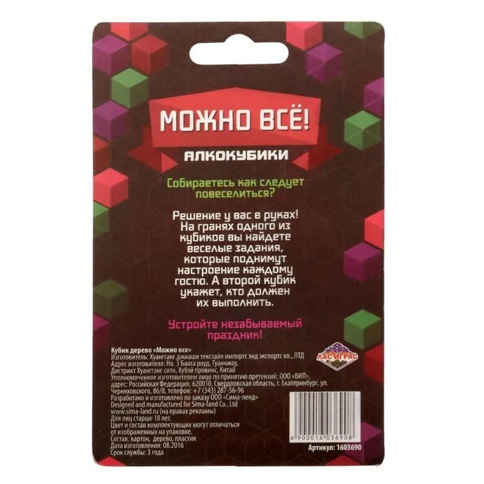 Купить кубик "можно все", алкокубики для принятия решений от 60 руб. с доставкой до пункта выдачи в Сухиничах. Интернет магазин ДекаМаркет. Оплата при получении.